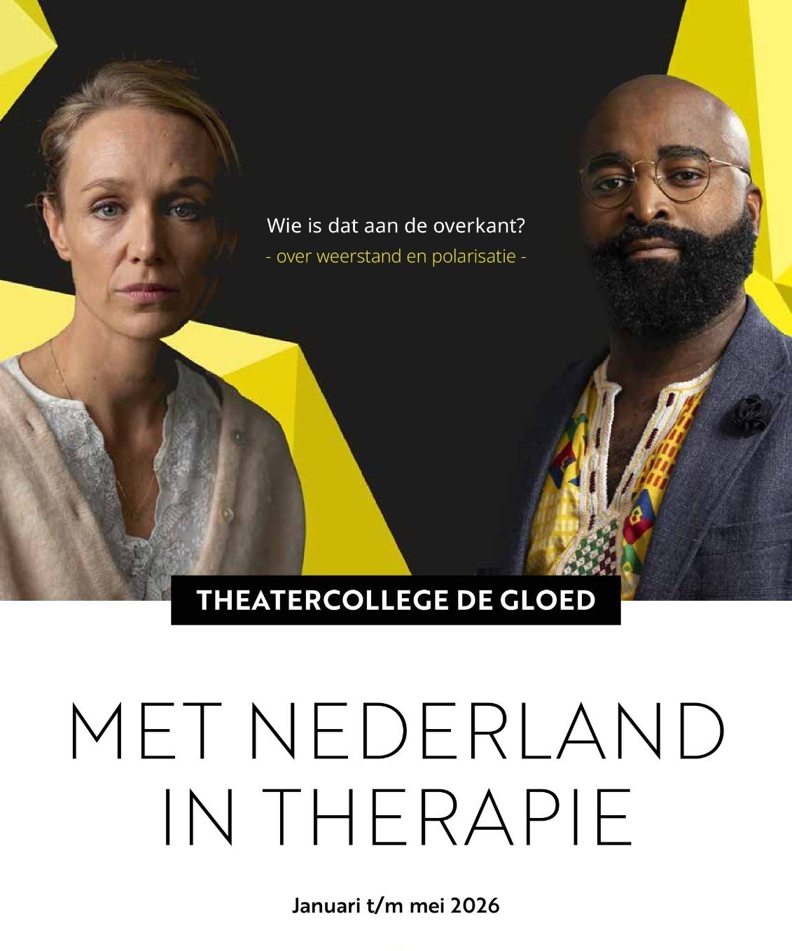 Naar aanleiding van de roman De gloed (uitgeverij Thomas Rap) en het boek Met Nederland in therapie (uitgeverij Prometheus) staan we stil bij gevoelens van angst en xenofobie ten aanzien van migratie. Wanneer er grote maatschappelijke of politieke uitdagingen zijn, vallen we gemakkelijk terug op vastgeroeste overtuigingen. Met dit theatercollege willen we de tussenruimte openen. De tussenruimte die in ons gepolariseerde land steeds vaker gesloten blijft, maar waarin samen nadenken, tegenstellingen uitspreken en begrip voor de ander de boventoon voeren.